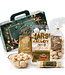 Het is bijna allemaal "goud" wat er blinkt! Dit fraaie kerstpakket bevat o.a. een mooie glazen presenteerschaal met goudkleurige rand. Dit is een echte gouden traktatie vol zoete lekkernijen en warme gezelligheid. Met een luxe uitstraling in goudtinten en heerlijke producten is dit het perfecte pakket om iemand écht in het zonnetje te zetten.